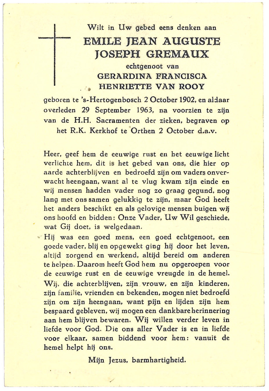 Emile Jean Auguste Joseph (Miel) Gremaux