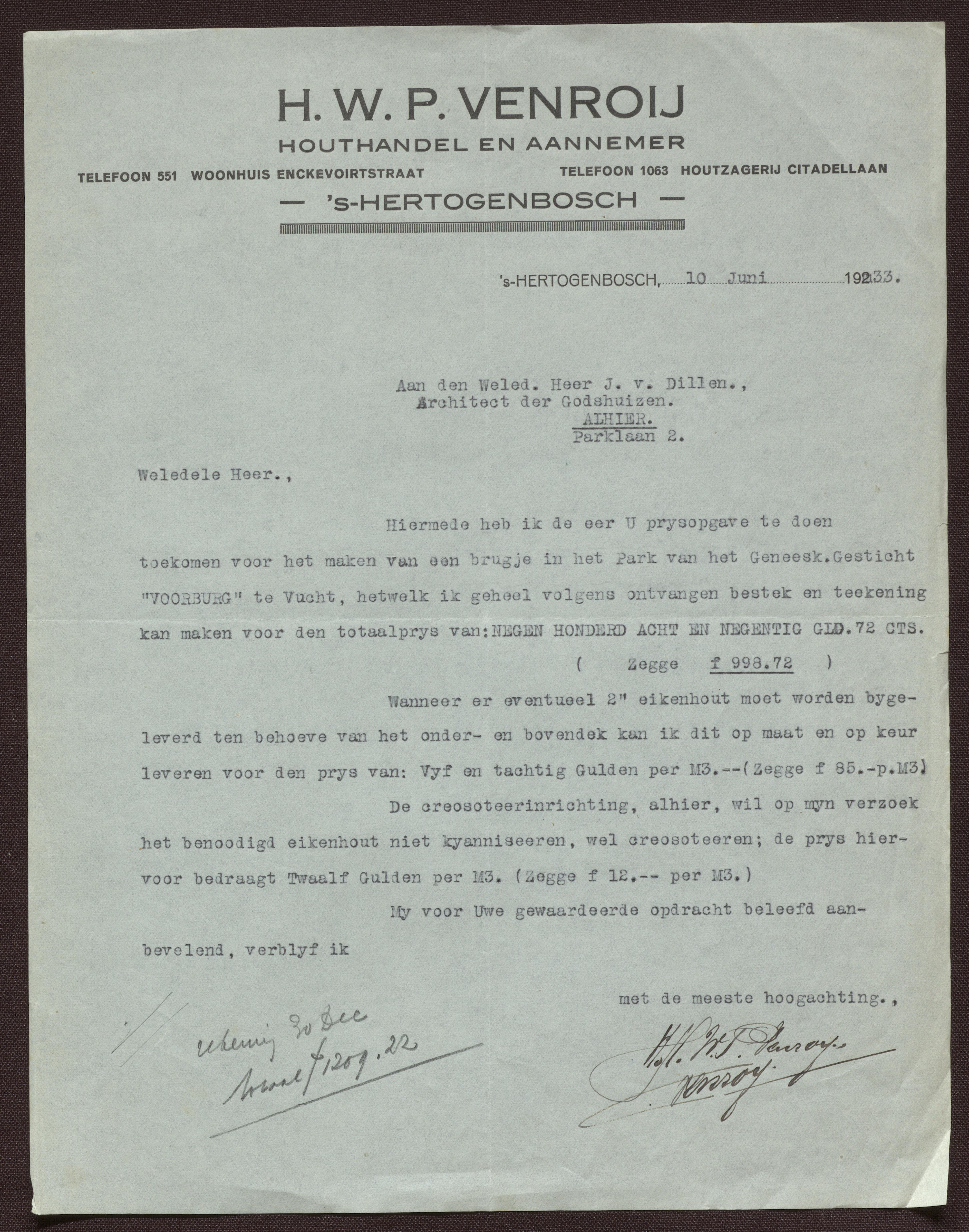 's-Hertogenbosch, Enckevoirtstraat 3 (corresp.-adres) / Citadellaan (houtzagerij)