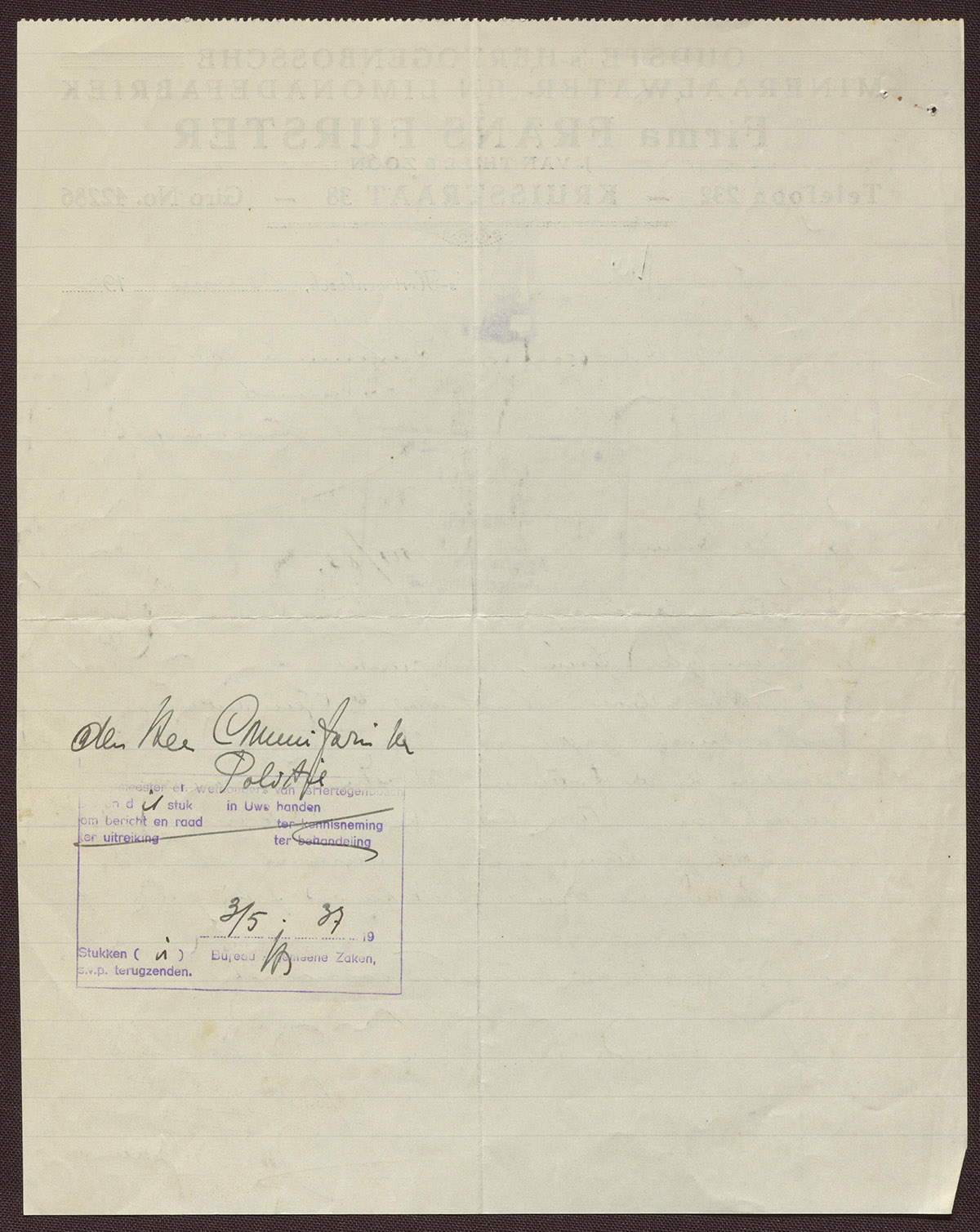 Firma Frans Furster : Oudste 's-Hertogenbossche Mineraalwater- en Limonadefabriek
