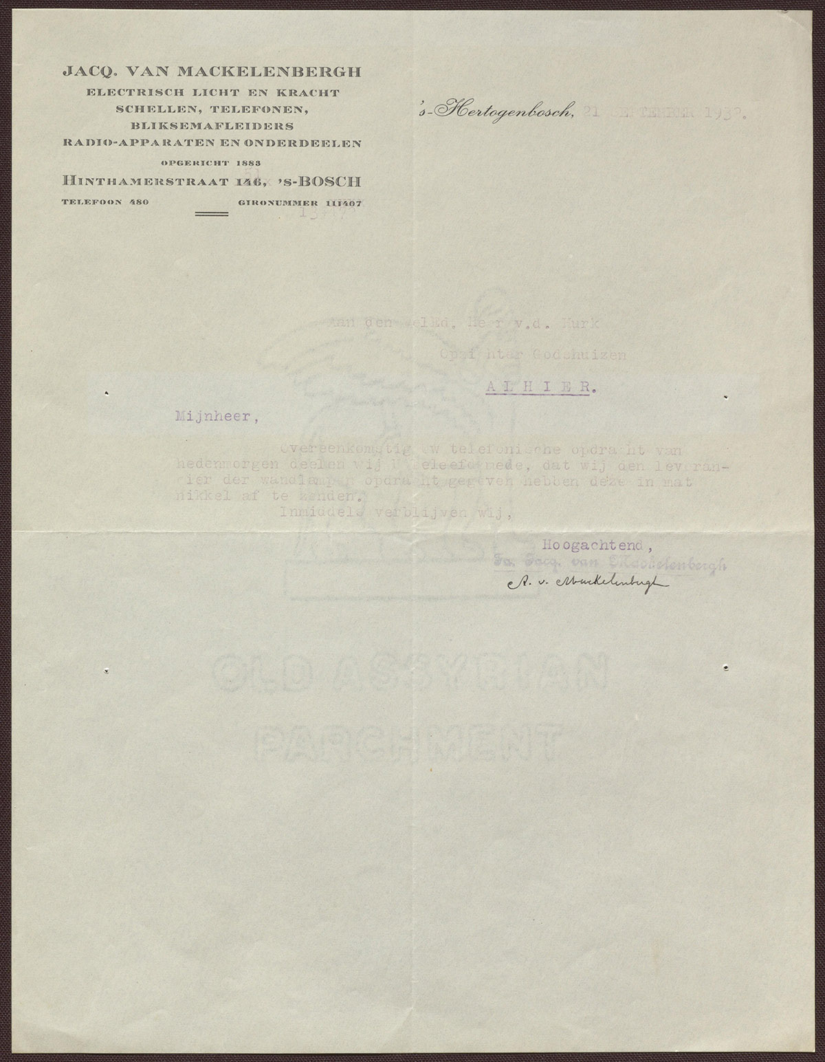 Firma Jacq. van Mackelenbergh : Electro Technisch Bureau