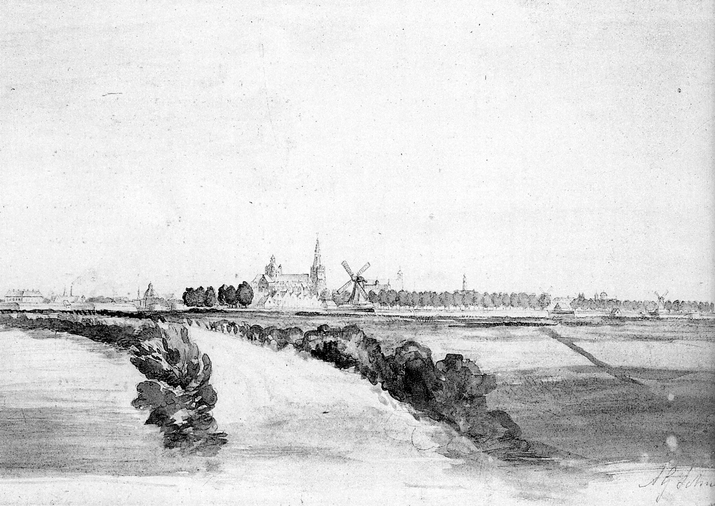 Rokende schoorstenen boven de stad als tekens van industrialisatie. Hier gezien vanaf het noorden. | 148 |