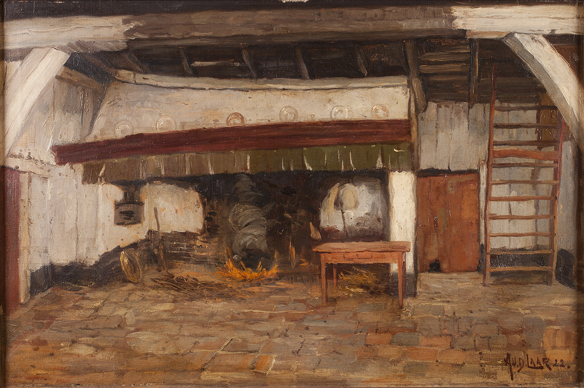 Op de achterzijde het opschrift: (spieraam) 'A. van de Laar december 1922 Boerderij Den Dungen Jansen Doorns / berg /steeg'. |