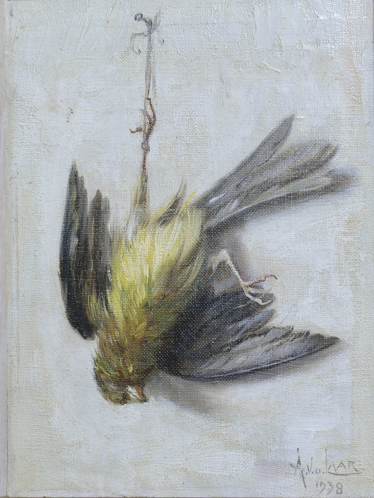 Op de achterzijde het opschrift: 'onze kanarie / + 1938 / Souvenir a Gertrude / 7 MEI 1944'. |