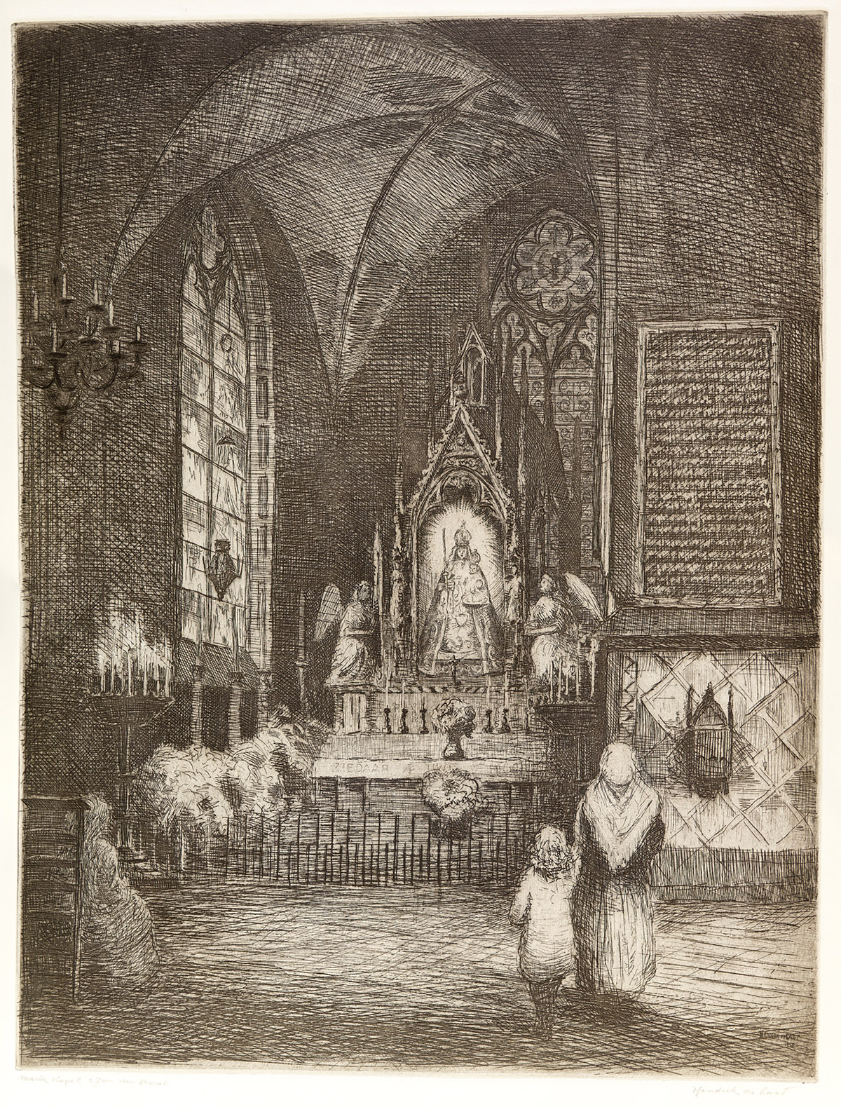 Op de afbeelding rechtsonder: Hendrik de Laat 1929. Buiten moet in handschrift (potlood) linksonder: Maria kapel s jan den Bosch; rechtsonder: Hendrik de Laat.