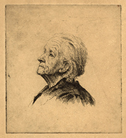 Portret van een oude vrouw. "Model KTA". Kop en schouders. Naar links.