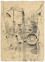 Gezicht op de Groote Stroom vanaf het bruggetje in de Korte Tolbrugstraat in zuid-oostelijke richting