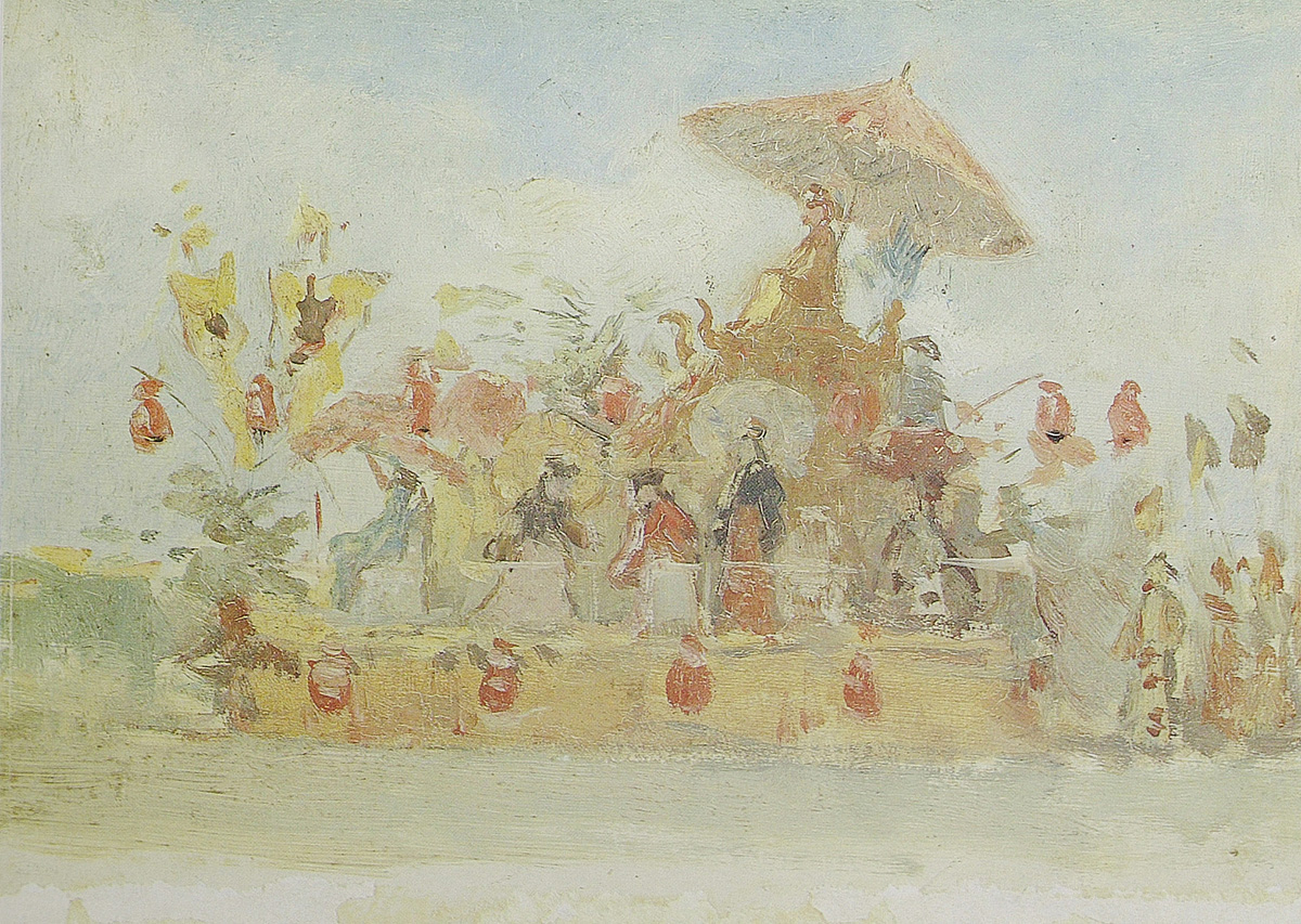 Ontwerp voor de chinezenwagen in olieverf door Frans Slager. Het origineel is in Museum Slager.
