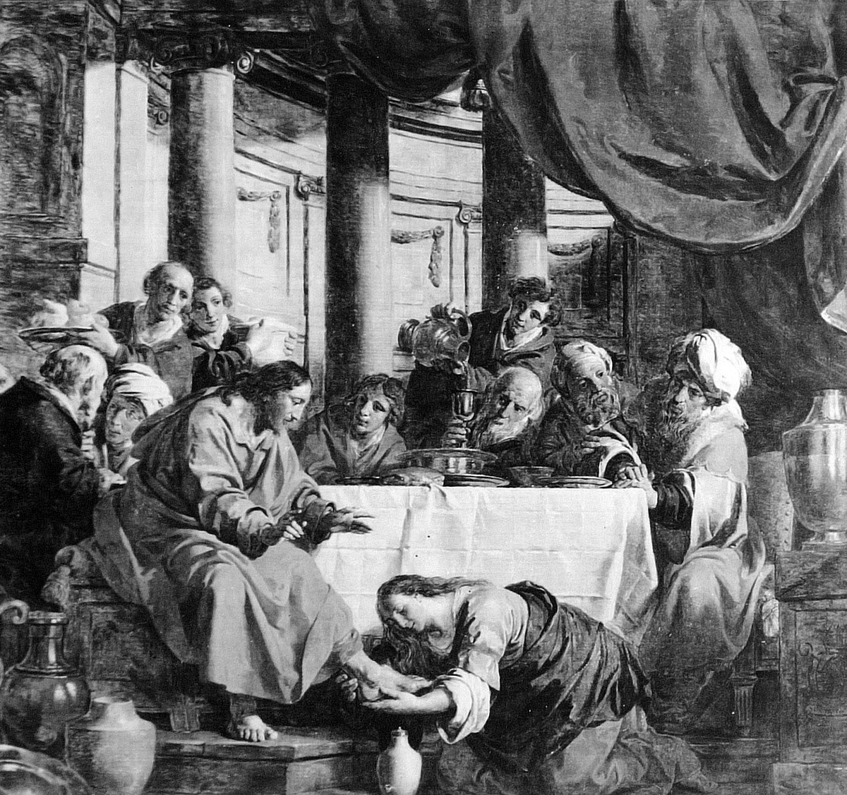 En zie, een vrouw in de stad die een zondares was, die merkte dat Hij in het huis van de farizeeër aanzat, bracht een albasten fles met zalf, en ging wenend achter zijn voeten staan, en zij begon Zijn voeten nat te maken met tranen, en zij droogde ze af met het haar van haar hoofd, en kuste Zijn voeten, en zalfde ze met zalf. |