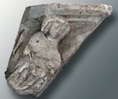 In tegenstelling tot andere vervangen reliëfs werd het originele beeldhouwwerk niet bewaard. Alleen de linker kraagsteen, ‘vrouw met banderol’, bleef behouden en is sedert 1985 in de bouwloods tentoongesteld.145 | 196 |
