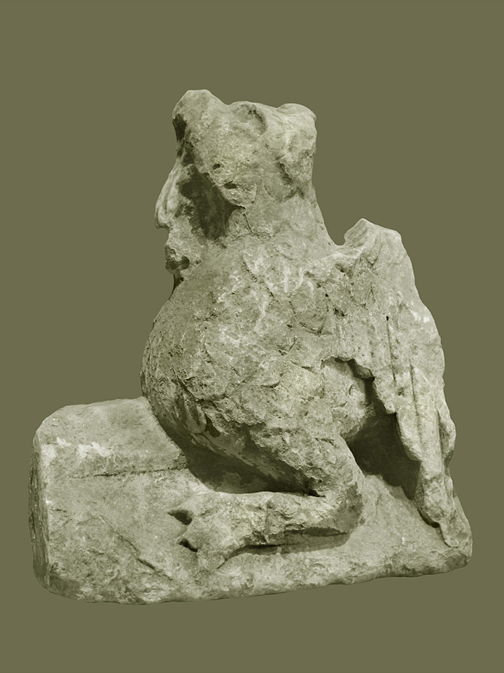 Wel bewaard bleef het beeld van een geklauwde roofvogel of draak met gestreken, gevederde vleugels van de noordzijde van het schip (N-IV.6). Duidelijk is zichtbaar dat de beschadigde, omhoogkijkende kop niet die van een vogel, maar van een monster met dikke, geprononceerde wenkbrauwen was. Hoewel er wel een klok onder de keel van het beest is uitgebeeld, zijn de poten overduidelijk van een zoogdier, zodat er met zekerheid van een hybride sprake is.78 | 368 |