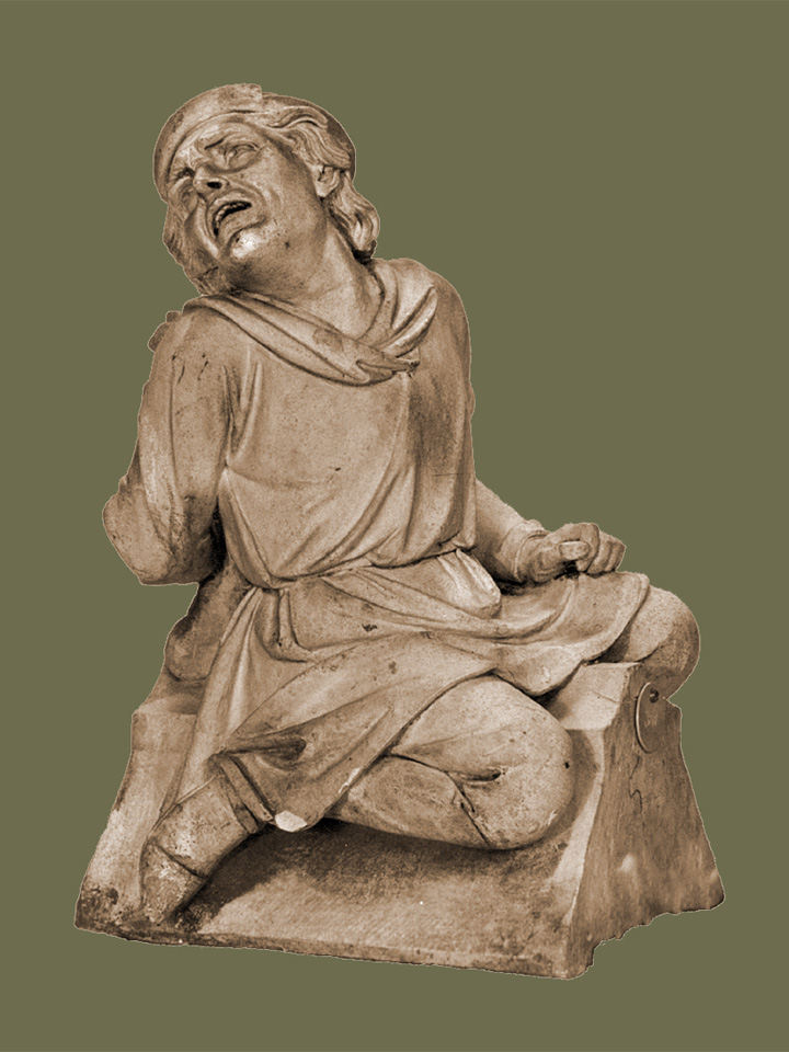 Model voor het nieuw figuur dat bij de restauratie van de luchtbogen in 1868-1873 op de plaats kwam voor het originele beeld.