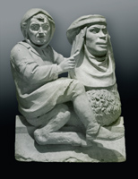 De betekenis van de figuur is onduidelijk, net als die van een zeer vergelijkbaar beeld, dat alleen van een schets van Hezenmans bekend is (N-IV.4). De tekening laat een figuur met hoofddoek of capuchon zien die op de rug zit van een sfinxachtig beest, bijna een kopvoeter. Het monster heeft overduidelijk een menselijk hoofd dat is bedekt met | 366 |