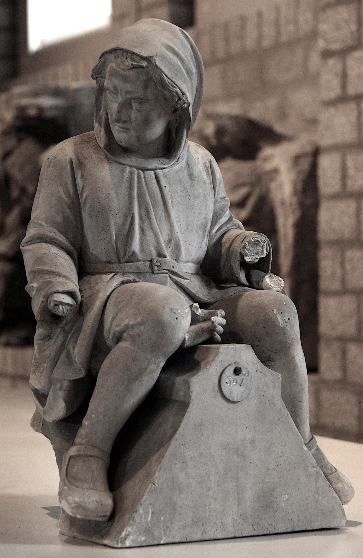 Model voor het nieuw figuur dat bij de restauratie van de luchtbogen in 1868-1873 op de plaats kwam voor het originele beeld.