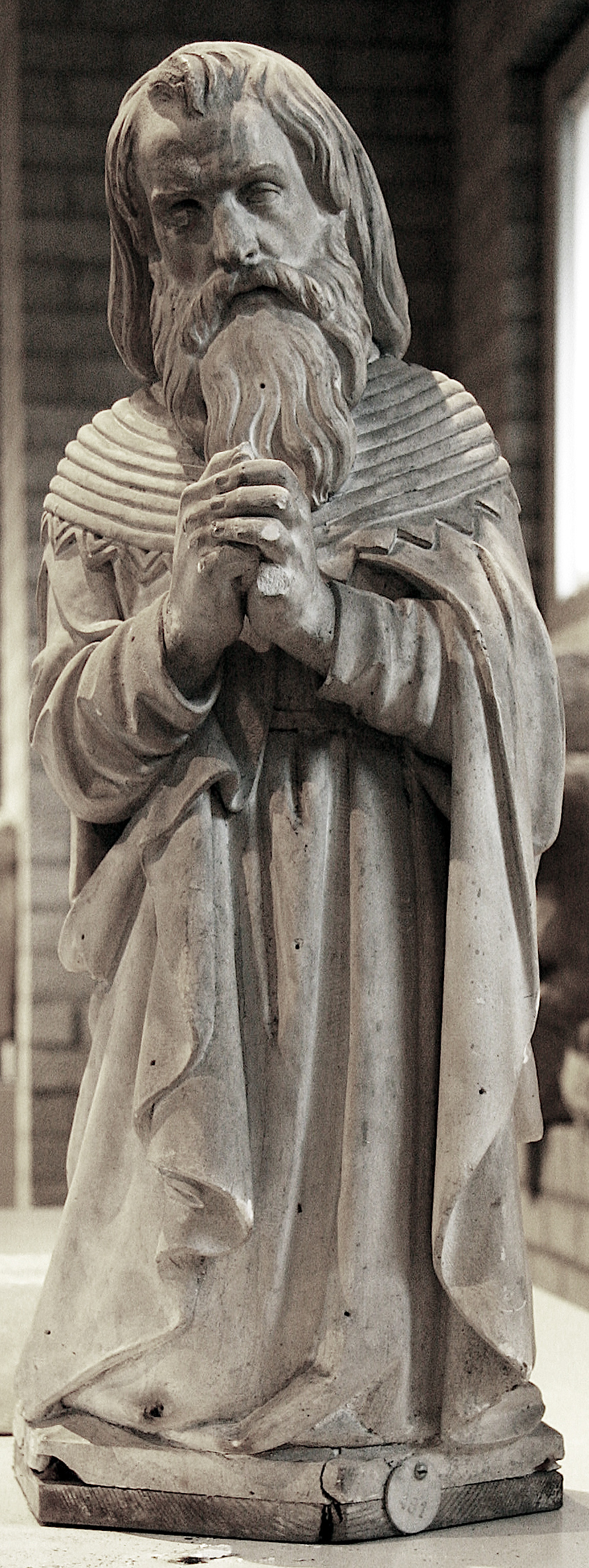 Een van de vijf gipsmodellen, bewaard in de bouwloods, maar niet gebruikt voor de uiteindelijke beeldenreeks.