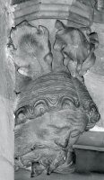 Hergebruikte kraagstenen en spuwers van de voorgangerkerken