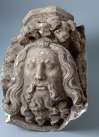 profilering van de dekplaten sluit daar ook direct op aan. Frappant is de overeenkomst met het zeker hergebruikte mannenhoofd k140 in de Suissekamer, maar deze heeft geen bijbehorend bladwerk of dekplaat. Een herkomst van de drie koppen uit de oude kerk ligt voor de hand, maar is tegelijkertijd ook raadselachtig omdat voor de bouw van de straalkapellen nog geen delen van de oude kerk hoefden te worden gesloopt. Stilistisch vertonen de hoofden onmiskenbaar gelijkenis met die van de grote standbeelden in het Petrusportaal aan de Keulse Dom. De sculptuur daar wordt toegeschreven aan Peter Parler, vóórdat hij in 1352 naar Praag vertrok. Een datering van de drie Bossche mannenkoppen voor het midden van de veertiende eeuw is hierdoor ook waarschijnlijk. | 74 |