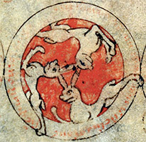 cirkel met hamer en beitel aan het bewerken zijn, precies zoals de harentrekkende en voeten kriebelende mannetjes uit Nagold, en de mannetjes uit Halle en ’s-Hertogenbosch die voeten en benen vasthouden. Wellicht is hieruit toch te concluderen dat er geen diepgravende betekenis moet worden gezocht achter deze draaiende mannetjes, maar dat er sprake is van een gril of grap van de beeldhouwer, een variant op de traditionele drôlerie waarop hij zijn vaardigheden kon uitleven. | 141 |