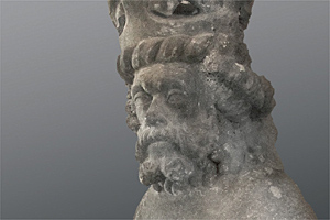 Boven de wildeman, op dezelfde luchtboogstoel, stond het keizersbeeld dat aanvankelijk door Smits en Mosmans als dat van keizer Maximiliaan van Oostenrijk werd bestempeld. Vermoedelijk namen zij deze foutieve identificatie over van Lambert Hezenmans, die in 1907, vlak voor zijn overlijden, een ontwerptekening maakte voor een nieuw beeld dat het keizersbeeld moest vervangen, waaronder staat: “beeld van Keizer Maximiliaan, Hoogchoor St. Janskerk”.24 Het originele beeld, dat zeer goed bewaard bleef, werd in 1909 desondanks toch met gips aangevuld ten behoeve van een kopie door A. Versterre.25 Daarbij werd veel van de verweerde steenhuid afgedekt met een gladde | 163 |