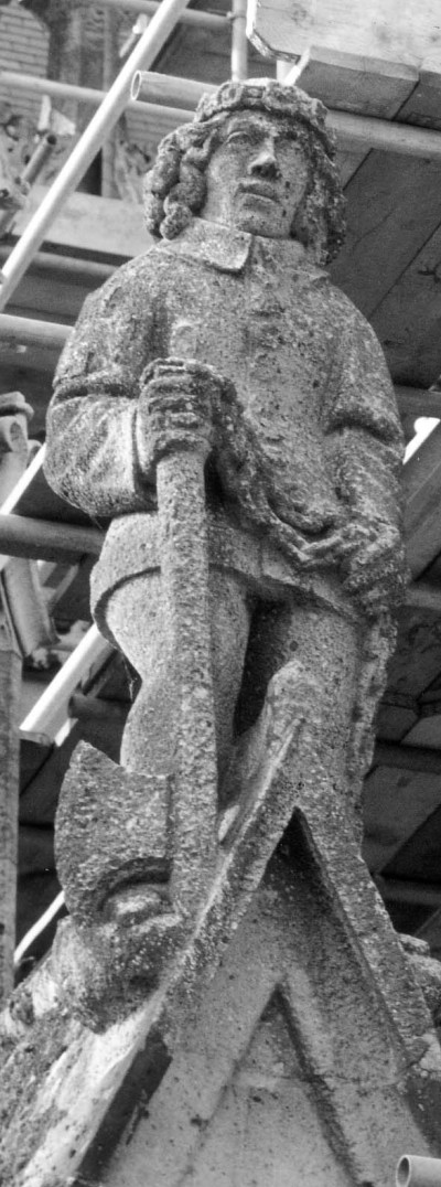 Stadbeelden op de luchtboogstoelen rondom het koor