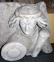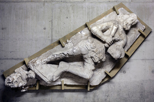 144.Van de linker figuur op het reliëf bleef in de bouwloods een zwaar gehavend gipsafgietsel bewaard; het inventarisnummer is onbekend.