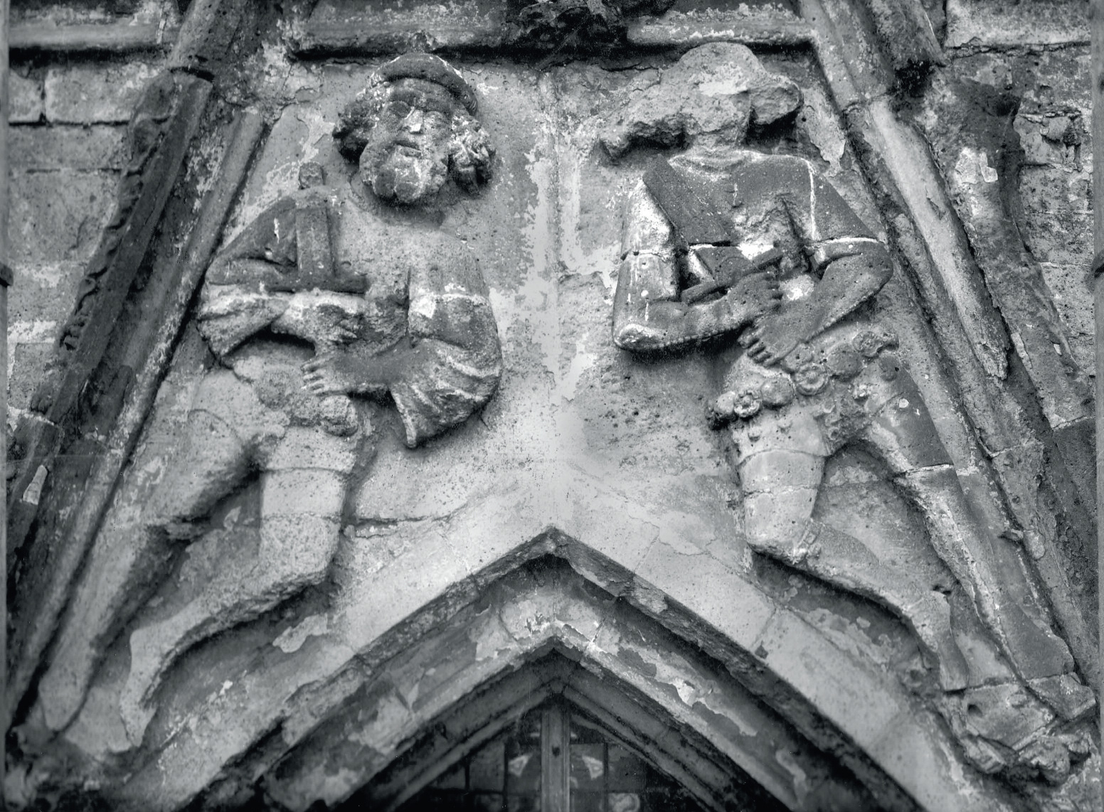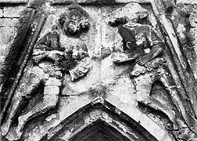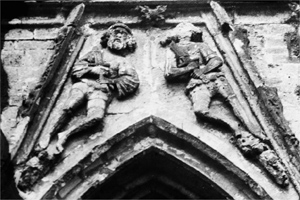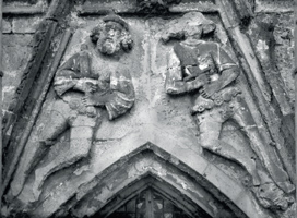 Zwikreliëf z36 behoorde voor de restauratie van 1918 tot de best bewaarde sculpturen aan het hoogkoor. Op het gezicht van de rechter figuur na, was het gehele beeldhouwwerk, inclusief de consoles, intact. De man aan de linker zijde staat ten voeten uit | 198 |