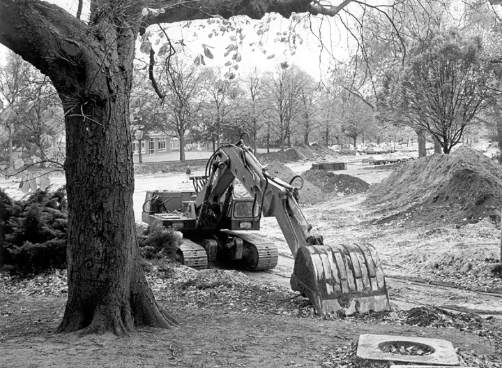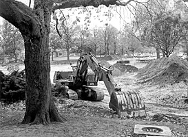 Heijmans spuit liters bentoniet de diepte inOver een paar maanden ligt er een ‘giga plas water’. Het graven voor garage Vonk & Vlam is begonnen.