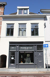 Het pand Vughterstraat 199-201 stond vroeger bekend onder de historische naam ‘De Engel’. Het heeft aan de linkerzijde een (thans) overbouwd steegje, dat naar dit huis is genoemd. In de loop van de 19e eeuw is het gebouw gewijzigd/vernieuwd. De oudere kern van het pand is echter nog steeds zichtbaar in de zijgevel in het steegje “Achter den Engel”. Het metselwerk hier dateert nog uit de late 16e eeuw. De constructieve elementen van het gebouw (kap en balklagen) zijn in 1964 vernieuwd, na een grote brand. Vervolgens is het geheel ook in de jaren 1971, 1994 en 1999 gewijzigd. Het staat geregistreerd als gemeentelijk monument. Links op de begane grond van het pand Vughterstraat 199-201 zit de getoogde ingang tot het steegje Achter den Engel. Foto: Josephine PerenDe 19e-eeuwse voorgevel is gepleisterd. Deze lijstgevel is tijdens de herstelwerkzaamheden na de brand in 1964 niet gewijzigd. In 1999 is de pui vernieuwd. Links op de begane grond zit de getoogde ingang tot het steegje Achter den Engel. Rechts hiervan is de winkelpui met de volgende indeling: winkeltoegang met bovenlicht, etalagevenster met bovenlicht en de ingang tot de bovenwoning, eveneens met bovenlicht. De pui wordt afgesloten door een kroonlijst. Op de verdieping zijn drie vensters zichtbaar. De lekdorpels van deze vensters vallen in de cordonlijst, die de verdieping van de begane grond scheidt. In de kozijnen met duivenjagers zitten vernieuwde ramen en een bovenlicht met glas-in-lood (uit de jaren 1920). Boven deze vensters zit een schijnstrek in het pleisterwerk. De voorgevel wordt afgesloten door een eenvoudig gestuukte fries en houten kroonlijst. De gehele begane grond is in gebruik als winkel. De brandmuur tussen voor- en achterhuis scheidt de winkel van het kantoor-bedrijfsgedeelte. Rechts hiervan ligt een lange hal, met in het voorste deel de trap naar de bovenliggende woning. Op de verdieping zijn de woonruimtes. Tegen de rechter zijmuur is de trap. Tegen de voorgevel over de gehele breedte van het pand is de woonkamer. Links tegen de muur zijn de keuken, badkamer en slaapvertrekken. Op de zolder zijn nog enkele slaapruimtes. De kelder heeft een enkelvoudige balklaag, die in 1964 is aangebracht. Ook de balklagen van de eerste verdieping en de zolder zijn enkelvoudig. De kap is in 1964 vernieuwd en heeft verbeterde Hollandse spanten. Het plafond van het steegje links van het pand wordt gevormd door houten balken en planken. |