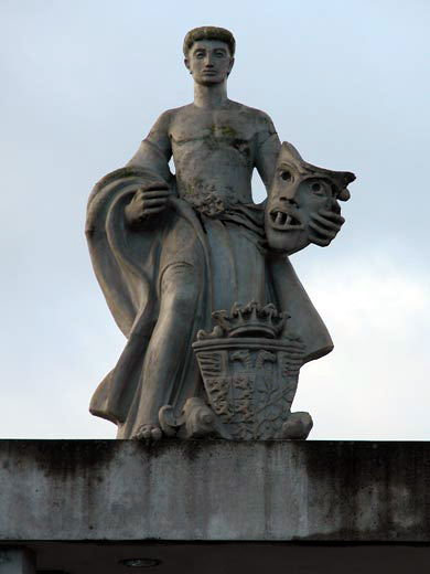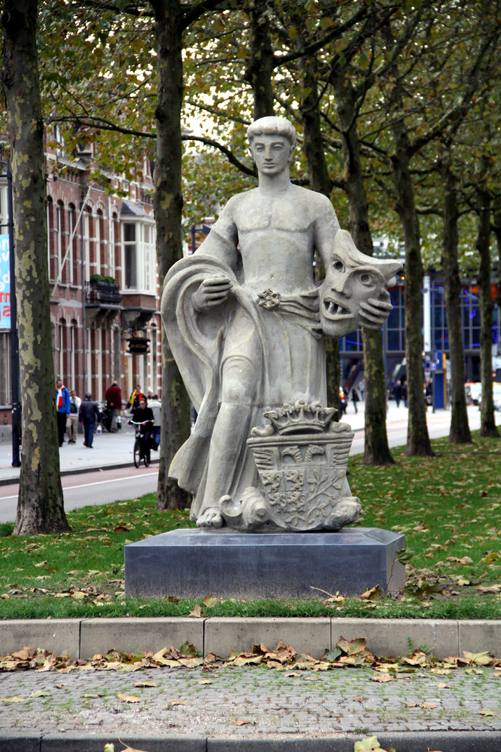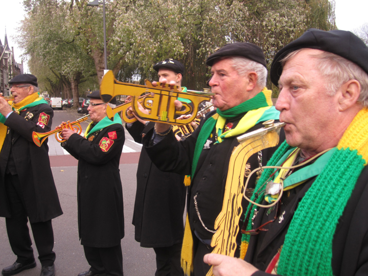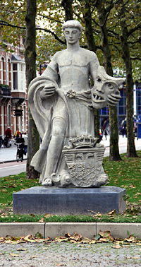 Ineens stond het daar, het imposante beeld, op de kop van de Stationsweg, 3 m 20 hoog en 1 m 50 breed, boven op een natuurstenen sokkel. Het is een kunstwerk van de hand van Jo UiIterwaal. Als je vanaf de Wilhelminabrug, richting station gaat, valt je oog er vanzelf op en je vraagt je af wat het beeld voorstelt en waarom het daar is geplaatst. Het beeld draagt de naam “Carnaval”. De werkgroep Het Kleine Monument van de Kring Vrienden van ‘s-Hertogenbosch constateerde in 2012 dat het beeld verdwenen was. Het vormde een paar met een even zo imposant beeld genaamd “Mercurius met Pegasus”. Beide beelden, daterend van 1952, stonden aan de gevel van het vorige Stationsgebouw van van Ravensteijn. Het station werd afgebroken in 1998. Alle kleine monumenten werden geďnventariseerd en op ’n enkel na kregen zij een nieuwe plek bij het huidige station. Het beeld “Mercurius” kreeg een mooie plek op de campus van het Koning Willem I college waar duizenden leerlingen dagelijks langs komen. Het Beeld “Carnaval” kreeg een plek hoog boven op de busremise vóór het station. Daar heeft het vanaf eind jaren negentig gestaan. Enkele jaren geleden werd begonnen met de bouw van kantoren aan het Stationsplein. Een deel van de busremise stond in de weg en werd verwijderd, precies dat deel waar het grote beeld op stond. Na enig zoeken bleek dat het opgeslagen was, maar helaas ernstig beschadigd. De werkgroep heeft vervolgens alles in het werk gesteld om het weer volledig gerestaureerd te krijgen, met duidelijke ondersteuning van de BAM van de gemeente. Wij wilden het terug laten plaatsen vlak bij de originele plek: het station. Daar komt immers de Preins aan op carnavalszondag en wordt hij door duzenden Oeteldonkers uitbundig verwelkomd. Aan de entree van het station bevindt zich ook nog het beeldje van Prins Carnaval. Dat ontvangt ieder jaar een boerenkoolkrans. Wij droomden er van dat het beeld “Carnaval” ook mee zou kunnen doen in de aankomstceremonie en zou worden aangekleed met ’n enorme Oeteldonkse sjaal, zoals bij de Draak gebeurt. In de directe omgeving van het station bleek te weinig ruimte te zijn. Uiteindelijk werd besloten om het beeld “Carnaval” te plaatsen op de huidige plek. We zijn het er over eens: een prominente plek. Het beeld vormt een element in de reeks van carnavalsmonumentjes die de stad rijk is en is dan ook voor Bosschenaren en toeristen van cultureel belang: Couleur locale! De Kring Vrienden heeft een prachtige cultuurhistorische wandeling ontworpen langs deze monumentjes. In de carnavalstijd kun je genieten van deze wandelingen. Ook de VVV heeft een leuke route ontworpen. Het beeld draagt de naam “Carnaval”. Veel Oeteldonkers en bezoekers van de stad zullen zeggen: wat heeft het beeld nou met carnaval te maken. Een Romeins aandoende uitstraling, van een grote kerel met ontbloot bovenlijf! Wanneer je goed kijkt zie je een groot carnavalsmasker in z’n linker hand. Vroeger droegen de carnavalsvierders ’n mombakkes, een masker zeggen wij vandaag de dag. Aan zijn linker voet staat het officiële wapen van ’s-Hertogenbosch. De werkgroep vond dat het beeld een Oeteldonkse ziel moest krijgen om op die manier door de Oeteldonkers omarmd te worden. Het beeld heeft veel weg van een Romeinse consul. Ons oog viel daarom op “Ut ‘Keleezje vaan Konsels vaan Oeteldonk in dun Vrimde”. Op 11-11-2013 was het groot feest: de Kikvorschen, hoogwaardigheidsbekleders van Oeteldonk, HKM en de Consuls onthulden gezamenlijk het beeld. Vanaf dat moment is het ooit verinneweerde beeld een echt Oeteldonks monument en wordt het jaarlijks gekoesterd door het College van Consuls. |