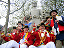Op maandag 11 november 2013 werd op de Kop van de Stationsweg het beeld 'Carnaval' onthuld. Boven de ingangen van het voormalige NS-station stonden twee grote gevelbeelden en twee kleine sculpturen. Het grote beeld dat links stond stelde Mercurius met Pegasus voor: een mannelijk figuur en een paard. Het grote beeld rechts stelde Carnaval voor: een mannelijk figuur met een mombakkes in de hand en een wapensteen aan de voeten. Bij de bouw van het huidige station verhuisde Carnaval naar het busstation. Het was in twee delen gebroken, maar is nu gerestaureerd. Jo Uiterwaal is de vervaardiger van het beeldhouwwerk. Het andere beeld staat overigens op het terrein van het Koning Willem I College. Oeteldonkse onthullingIn zijn hoedanigheid als voorzitter van de Werkgroep Het Kleine Monument sprak Nort Lammers een welkomstwoord uit aan de Kikvorschen, het Kringbestuur en een zware delegatie van de Oeteldonksche Club (OC). “Een delegatie die in verhouding staat tot het gewicht van het beeld”, aldus Lammers. Ook verwelkomde Nort Lammers een nieuw fenomeen in Oeteldonk: 'konsuls'.Rob van de Laar, oud-minister-president van de OC, stelde vervolgens de nieuwe konsuls voor. Het ging om: Hans Ramaekers van Keiespellersdurp (Helvoirt), Jack van Uden van Bokkendonk (St-Michielsgestel), Harold Burger van Slotgat (Empel), Roel Eerden van Dommelbaorzedurp (Vught) en Rob van de Laar zelf van Zandhazendurp (Rosmalen). Het consulaat is er slechts kort tijdens carnaval. “We zijn maar elf minuten per jaar open”, aldus Van de Laar. Vervolgens voltrok zich de plechtigheid van de onthulling van het beeld met het weghalen van de Bossche vlag (“wat natuurlijk de Oeteldonkse vlag had moeten zijn”, volgens Van de Laar) en het plaatsen van een krans. Het gerestaureerde beeld Carnaval staat op een sokkel in het grasperk op de Kop van de Stationsweg en kijkt naar de Wilhelminabrug. Het beeld vormt een element in de reeks van carnavalsmonumentjes in onze stad en is derhalve voor Bosschenaren en toeristen van cultureel belang: couleur locale! | 20 |