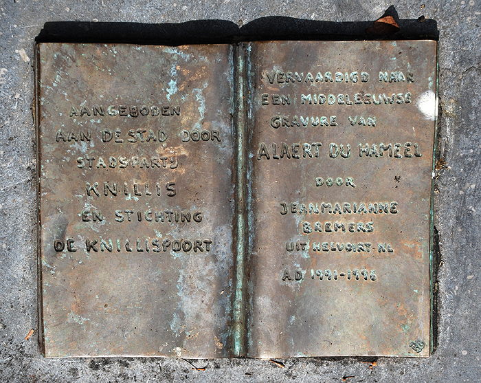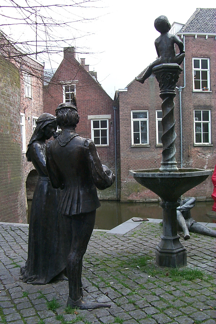 Dieske kijkt sinds enige jaren weer uit over de rivier die hem hielp om bekend te blijven. Ironisch genoeg werd Dieske, een jongetje dat volgens de overlevering aan het einde van de 15e eeuw leefde, onsterfelijk omdat hij de Diest (nu Binnendieze) gebruikte om erin te plassen. Dat deed hij ook toen hij op een gegeven moment aan de overkant van de Diest enige mannen door het riet zag sluipen. 'Zouden het Geldersen zijn? Zouden ze ons weer willen overvallen?' dacht Dieske en hij sloeg alarm. De Geldersen trokken weg. Dieske werd een held en vereeuwigd door Alart Duhamel. Duhamel zette het ventje, vol bewondering over de kleine heldendaad, bovenop een zuil van de fontein in een van zijn schetsen: Minnepaar en nar bij een fontein. Ook het liefdespaar en de nar zijn, de naam zegt het al, afkomstig uit deze prent.