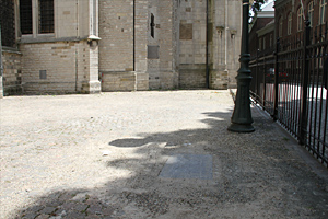 Aan de voet van het standbeeld van Sint-Jan de Evangelist op de Parade lag gedurende enkele decennia het enige teruggevonden religieus relict van het Groot Begijnhof, de grafzerk van een begijn. Na de herinrichting van de Parade dit jaar werd het natuurstenen grafzerkje teruggeplaatst op dezelfde kwetsbare plek. Door toedoen van Ton Vogel en Cees Roodnat van de Kring Vrienden van 's-Hertogenbosch ligt de grafsteen nu op een veilige locatie achter het hekwerk van de Sint-Jan, nabij het zuidertransept. Een gesprek met twee volhardende bewakers van het Bossche culturele erfgoed. Op het plein dat nu Parade heet, lag in de middeleeuwen het Groot Begijnhof. Volgens een oorkonde waren er in 1274 al begijnen of bagijnen in onze stad. Begijnen hadden een status tussen die van een kloosterling en een leek in. Zij legden wel een gelofte van gehoorzaamheid en kuisheid af, maar niet voor eeuwig. Begijnen konden altijd het hof verlaten. Een gelofte van armoede ontbrak geheel. Het Groot Begijnhof was zeer uitgestrekt, het was een van de grootste begijnhoven van de zuidelijke Nederlanden. Het omvatte het gebied van de huidige Parade, het Theater en de Cavaleriestraat tot aan de Binnendieze. Alles met een hoge muur omsloten. De hoofdpoort was tussen de Sint-Jan en de huidige plebanie aan de Choorstraat, er was nog een kleine poort aan de Peperstraat. Het begijnhof bestond uit het eigenlijke hof voor de welgestelde begijnen, zij woonden met twee tot vijf vrouwen in een ruimte. Daarnaast waren er twee verblijven (de kleine en grote infirmerie) waar de arme begijnen gehuisvest waren. In bloeitijden - zoals in 1526 - woonden er wel 160 begijnen. De begijnen mochten een eigen kerk, kerkhof en priester hebben. In 1304 was de driebeukige kerk gereed, deze was aan Sint-Nicolaas toegewijd. De begijnen besteedden hun tijd met bidden, lesgeven aan meisjes en met weven van stoffen. Met dit laatste verdienden ze niet alleen hun kost, maar betaalden ze ook de bomen op het begijnhof. Dat waren lindebomen, al vanaf de vroege middeleeuwen een symbool van Maria. De begijntjes stonden in 's-Hertogenbosch in hoog aanzien. Tijdens de Beeldenstorm van 1566 werd het begijnhof met rust gelaten. Laatste tastbare herinneringBij de inname van 's-Hertogenbosch in 1629 woonden er 78 vrouwen in het hof. In de overgavebepalingen was opgenomen dat het Begijnhof mocht blijven bestaan, totdat de laatste begijn gestorven zou zijn. Dat was in 1675 het geval, bijna vijftig jaar later na het beleg stierf Cornelia van Deursen. Na haar dood ontstonden felle geschillen over de eigendom van het terrein. Deze onenigheden duurden tot 1721. Toen werd een deel van het gebied staatseigendom, en een deel stadseigendom. In de jaren daarna raakten steeds meer gebouwen van het begijnhof in verval. De Sint-Nicolaaskerk is in 1701 gesloopt. In 1749 werden de laatste resten van het hof opgeruimd. Het vrijgekomen terrein werd ingericht als parade- en exercitieplaats voor het garnizoen en was toen onbestraat. Daar komt de straatnaam Parade vandaan. Op de plek waar nu het theater staat en langs de Triniteitsstraat werden twee lange militaire paardenstallen gebouwd. Deze situatie bleef zo'n twee eeuwen gehandhaafd. Na jaren van verval en een grote brand werden de stallen in 1934 gesloopt. Aan de Bossche begijnen bestaat nog slechts één herinnering: een grafzerk afkomstig uit hun kerk. De grafsteen werd gevonden tijdens een archeologische opgraving op de Parade in 1983. Sindsdien lag de zerk aan de zuidkant van de kathedraal, in het plaveisel bij het beeld van Sint-Jan de Evangelist van de beeldhouwer Mari Andriessen. Het grafsteentje heeft ook een periode centraal op de Parade gelegen, nabij de zuil voor betaald parkeren.Yken Goyaerts Haubraken, 1519De bewuste grafsteen is niet zo groot, 50 x 79 cm, vervaardigd van lichte Maaskalksteen met witte aders, destijds was hij bestemd voor het graf van een begijn. De rechterbovenhoek is afgebroken. Op de steen staat in hier en daar lastig te herkennen letters (de inscriptie volgt de rand): hier leet begu? ijken / goeijaert haubrakens dochter / baghý die sterf / ao xvc xix d's s?daghs nae beloke / paeschen. In hedendaags Nederlands: Hier ligt begraven IJken Goeijart Haubrakens dochter begijn gestorven op de zondag na Beloken Pasen 1519. De oorspronkelijke tekst ziet er wat 'afgebrokkeld' uit; in de (late) middeleeuwen was het gebruikelijk om allerlei woorden af te korten. Hier is dat gedaan met: begraven - baghijn - zondags - beloken. Het afkorten van woorden werd met streepjes erboven aangegeven. De kleine c boven de v in het getal XV staat voor het Romeinse cijfer 100 (afgeleid van het L. centum = honderd).Yken Goyarts Haubraken was een dochter van de snijder Goyart Willems Haubraken en diens eerste vrouw Catharina. Ida of Yken was begijn op het Groot Begijnhof. Haar inschrijving in 1470/71 als gewoon lid van de Illustre Lieve Vrouwe Broederschap is bewaard gebleven: Yda Goyarts dochter van Houbraken begynen opten groten hof. Ze leefde een teruggetrokken bestaan op het begijnhof en heeft weinig sporen nagelaten in de archieven. Ida overleed op de zondag na Beloken Pasen 1519, dat wil zeggen op 8 mei van dat jaar. In de rekening van de Broederschap over het jaar 1518/19 staat de betaling van de doodschuld voor de overledene Yda Goyart Houbraken dochter beghyne opgetekend. Ida werd zeer waarschijnlijk in de Sint-Nicolaaskerk begraven. Kwetsbare plekBij de herbestrating van de Parade dit jaar was het begijnengrafzerkje - op verzoek van Ton Vogel - van zijn plek gelicht en had het een tijdelijke, verticale plaats tegen een zuidwestelijke steunbeer van de Sint-Jan gekregen. Medio mei ontdekte Ton dat de grafsteen weer op zijn oude locatie aan de voet van het beeld van Sint-Jan de Evangelist in het plaveisel was teruggebracht. Dat vond hij te gek van woorden. Hij schreef een 'brandmail' naar Hans Meester, hoofd van de afdeling BAM (Bouwhistorie, Archeologie en Monumenten). “Het baarde mij zorgen dat de enige grafzerk v