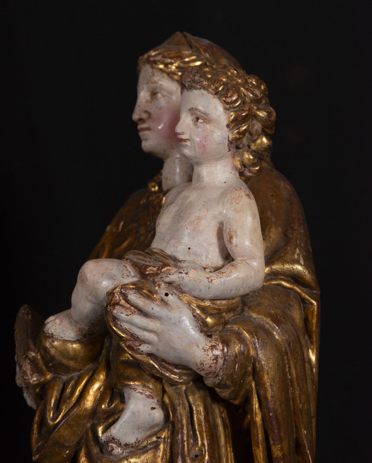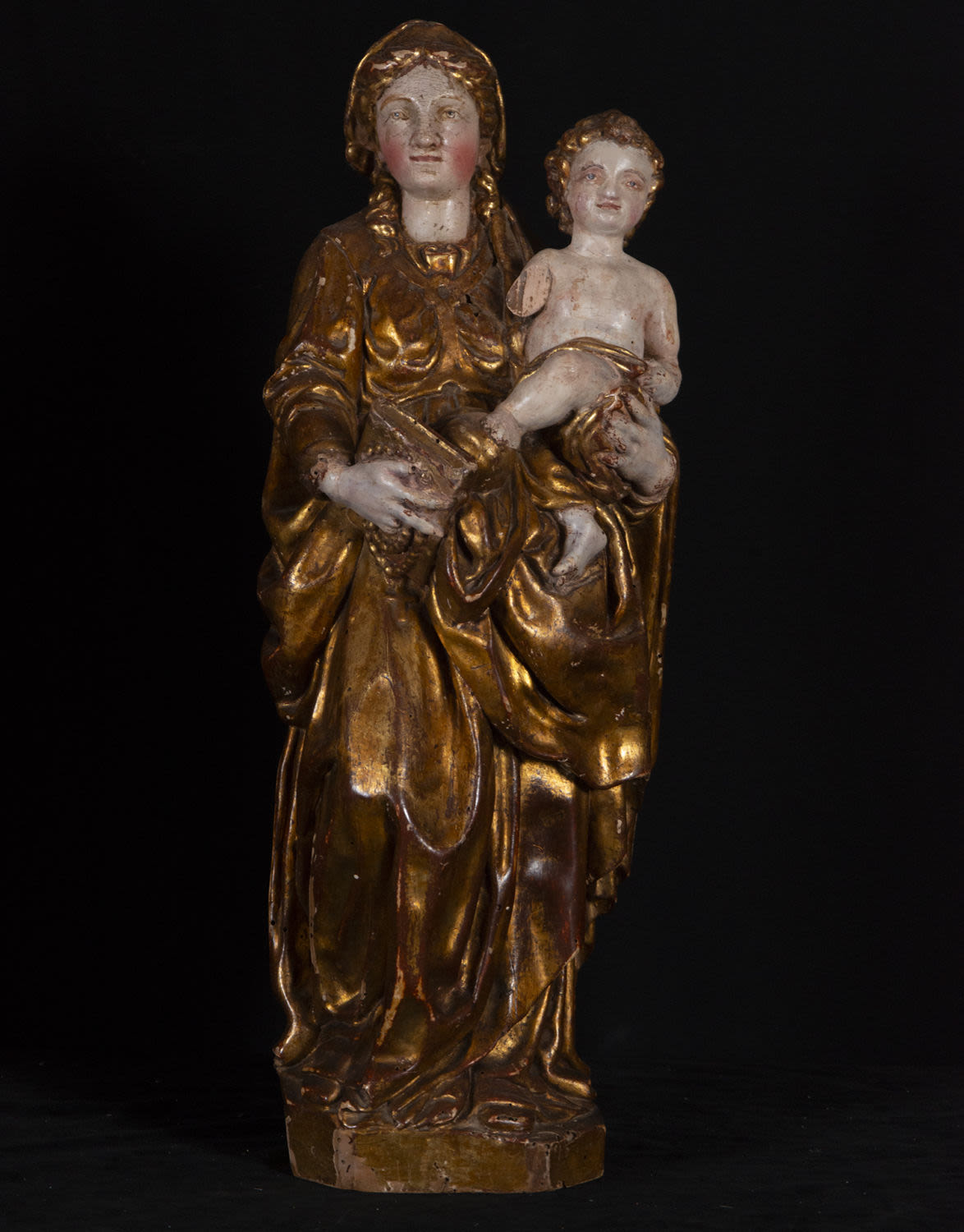 Wood carving with a good part of gilding and polychrome of origin, missing in the arm of Child Jesus. Roque Balduque (1500-1561), sculptor and altarpiece of Flemish origin born in a place that in Spanish was known as Bolduque but its name was Bois-le-Duc (now called 's-Hertogenbosch), capital of North Brabant (Holland), unknown date and active until his death in 1561.