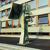 Baden Powellstraat 1, voor de Hogere Agrarische Schoolafmetingen: 320 x 145 x 450 cmmateriaal: aluminium datering: 1968 vervaardigd door: Ad Louwinger Een grijs aluminium object met geruwd oppervlak dat destijds bij de opening van de nieuwbouw voor de ingang geplaatst in het kader van de rijkspercentage-regeling. Nu het object door onbekenden is voorzien van een verflaag, toont het grote overeenkomst met een boom. | 75 |