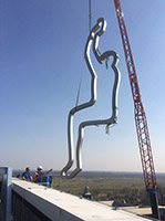 De sculpturen, gemaakt van edelstaal, zijn ruim 9 / 6,5 meter groot en wegen een ton per stuk. Ze zijn ontworpen met licht verlengde ledematen om hun gebaren van 'verwelkoming, het wijzen en zitten' te versterken.