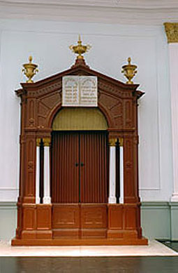 Muziekcentrum De Toonzaal : Voormalige SynagogeIn 1823 werd hier een Joods gebedshuis gebouwd in opdracht van mr. Bernardus Hartogensis. In 1886 werd deze synagoge herbouwd naar ontwerp van I. Gosschalk als een zaalruimte met vrouwenbalkon. De achterwand is driezijdig gesloten, de zijwanden zijn geleed met gestucte pilasters. Het meubilair, na 1945 overgebracht uit de Synagoge van Zaltbommel, is bij de restauratie in 1996 grotendeels opnieuw ter beschikking gesteld aan synagogen elders. De heilige Arke is hier bewaard gebleven. Hierboven marmeren Tien Geboden tafelen, afkomstig uit Monnikendam en een gedenkplaat ter herinnering aan een bezoek door koningin Wilhelmina en koningin-moeder Emma in 1918.