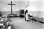 Bezoek werd er niet ontvangen. Door middel van een 'rol', een draaiende kast, konden brieven en boodschappen naar binnen gebracht worden. Soms was het echter noodzakelijk dat een buitenstaander het klooster binnenkwam. Een biechtvader of een arts mocht slechts in contact treden met een zuster indien er twee oudere zusters bij aanwezig waren. De kiesplicht had dan ook een grote invloed op de religieuzen. Bij de te houden verkiezingen moesten de zusters het klooster, het slot, verlaten. Met een doek over het hoofd gingen ze in een auto direct naar het stembureau. Na het uitbrengen van hun stem gingen ze direct weer terug naar hun klooster... De kapel in het klooster was voor iedere Bosschenaar toegankelijk. Maar de zusters waren daar niet aanwezig. Vanauit een eigen ruimte, door middel van tralies afgescheiden van de andere gelovigen, woonden zij de mis bij.