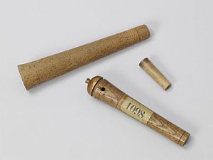 Het slaan van een buisWat was er nu precies gebeurd? Wat wordt er bedoeld met het slaan van een buis? Het gaat hier om de vervaardiging van bom- of granaatbuizen, ontstekingsmechanismen voor bommen of granaten. Een Handleiding voor onderofficieren, tot de kennis der theoretische en practische wetenschappen der artilerie uit 1833 legt uit: “de buizen worden vervaardigd uit gekloofde stukken esschenhout […] die in de strekking der lengte met een rond gat doorboord zijn hetwelk met eene brandbare sas gevuld wordt om daarmede de lading der bommen of granaten aan te steken. Met sas wordt in dit verband een snel verbrandend, al dan niet ontplofbaar mengsel bedoeld, dat wordt gebruikt voor de ontsteking van bommen of granaten.3 Het vullen van een dergelijke buis ging als volgt: een schepje sas, aandrukken met een stamper, zeven maal drie slagen op de knop van de stamper, en dan weer een schepje sas enzovoort, totdat de buis vrijwel vol was.Onderluitenant Van der Veen moet bij het slaan op de stamper een vonk hebben veroorzaakt waardoor de sas in brand is gevlogen, een brand die zich snel uitbreidde met fatale gevolgen voor Van der Veen en een van zijn collega’s.