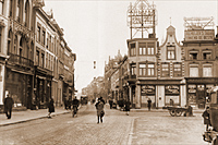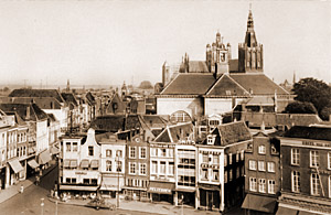 De Bossche Markt lijkt niet te veranderen, maar haast ongemerkt gebeurt dat tóch. Neem nu het stukje tussen de Hinthamerstraat en de Kerkstraat. Het is een voorbeeld van restaureren en vernieuwing. Op de hoek van Markt met de Hinthamerstraat bevond zich een generatie geleden het bekende Tivoli van de familie Van Geffen in een dubbel pand. Het café verdween en een opticien vestigde zich er. Het is een filiaalbedrijf dat - zoals meer met landelijke ketens - dikwijls met een schreeuwende reclame de aandacht op zich wil vestigen. Gelukkig zijn de grote neonreclames die zich op het dak van de panden bevonden verdwenen. Het pand ernaast herbergt een souvenirwinkel die tevens religieuze artikelen in de aanbieding heeft. In dit pandje heeft de meest bekende Bosschenaar, Jeroen Bosch, zijn jeugdjaren doorgebracht. Misschien is hij er zelfs wel geboren. Gelukkig is aan dat feit aandacht besteed: een bronzen plaquette is precies een jaar geleden in de voorgevel aangebracht, als een herinnering aan deze illustere Bosschenaar: Jeroen van Aken, die zich naar zijn geboortestad Jeroen Bosch noemde. Het volgende pand herbergde tot in de jaren zeventig boekhandel Mosmans. Het pandje was in 1948 gerestaureerd en toen voorzien van zijn kenmerkende gevelbekroning. Bij die gelegenheid sprak burgemeester Loeff dat dergelijke restauraties méér plaats zouden moeten vinden. Hij pleitte toen voor de oprichting van een Stichting Stadsherstel, maar die is er nooit gekomen. Mosmans was echter niet alleen boekhandel, maar tevens drukkerij. In de laatste jaren van hun bestaan aan de Markt had zij in het achterste deel van het pand een galerie 'Achter de stadsmuur' geheten. Dat klopte, want de oudste stadsmuur van het kleine stadje 's-Hertogenbosch bevond zich direct achter de panden aan de Markt. Dwars door de dertiende eeuwse stadsmuur heenstappend kwam men in de galerie terecht. Maar ingrijpend is dit veranderd toen er een ruil plaats vond tussen Mosmans en Hein den Doop. De boekhandel verhuisde naar de Kerkstraat en de schoenwinkel vestigde zich aan de Markt. Direct daarna bleek dat de schoenenwinkel een te opvallende reclame - een luifel - had aangebracht. Maar deze is inmiddels verdwenen. In het daaropvolgende pand is vele jaren lang de firma Frits van der Ven gevestigd geweest. Het echtpaar Van der Ven-Boelens handelde in textiel. Eerst op de Markt, later in een pand in het Tweede Korenstraatje en vervolgens in een winkel aan de Markt. De kinderen van dit echtpaar zijn voor een deel eveneens 'in de textiel' terechtgekomen. Anderen hebben heel andere keuzes gemaakt: jezuïet of antiquair. Ter herinnering aan dit echtpaar is op het trottoir - je loopt er haast ongemerkt overheen - een speciale steen aangebracht met een tekst ter herinnering aan Frits van der Ven (1899-1981) en Marie Boelens (1901-1989). De twee laatste panden hebben een modernisering ondergaan, kenmerkend voor de zestiger en zeventiger jaren. Het zijn strakke panden geworden met veel glas, eigenlijk niet passend in deze gevelrij. Op de hoek met de Kerkstraat is thans bakkerij Tonnie de Groot gevestigd, maar voordien zaten er al lang bakkers. Zou het bekende carnavalsliedje 'Op de mert daar woont 'nne bekker' niet op deze bakkerij kunnen slaan? Verder valt het op dat de geparkeerde auto's op de Markt verdwenen zijn. Was de Markt zo'n vijfentwintig jaar geleden nog één groot parkeerterrein op een aantal dagen van de week, thans is dit niet meer het geval. Auto's worden geweerd en het stadsbestuur pleit voor een autoluwe binnenstad. Driehoeken moeten er zorg voor dragen dat zo weinig mogelijk verkeer in het centrum van de binnenstad terecht komt. Parkeergarages zijn daarvoor gerealiseerd bij de Arena en twee bij het station. De verlichting op de Markt is ook aangepast. De 'gewone' straatverlichting heeft plaats gemaakt voor nostalgische armaturen. Hier op de Markt zijn het forse lampen, een herinnering aan de eens zo grote Lange Sijn die midden op het plein de omgeving verlichtte. Maar die grote lantaarnpaal is al lang weg. |