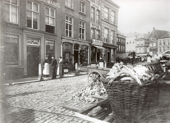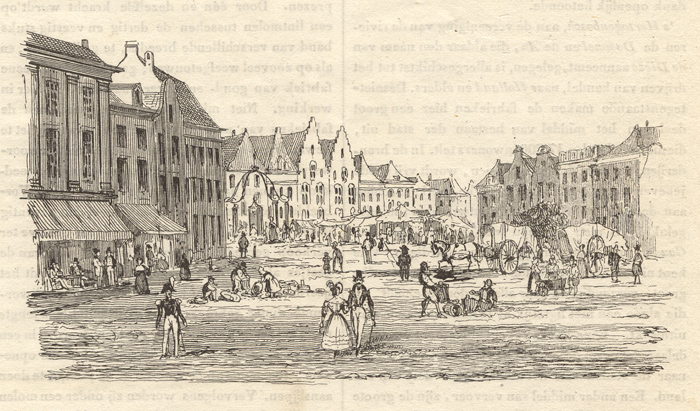 Kort bij dit huis begint de Markt, waarvan de afbeelding, zooals zij er in 1579 uitzag, voorkomt in van Heurn Historie II p. 121. Ten tijde van van Heurn werden op deze Markt gehouden: a. op de N.O. zijde daarvan, namelijk van af de Kerk- tot aan de Tolbrugstraat, de dagelijksche groentenmarkt; b. op hare N.W. zijde, zooals wij reeds zagen, de botermarkt; c. op hare Z. zijde en wel van af de Kolper- tot aan de Minderbroederstraat, de markt van de eetwaren, waarmede de boeren uit de Meierij ter markt kwamen; d. tusschen dit gedeelte der Markt en de Korte Kamers de markt van de mik, die op de vrije marktdagen aldaar door de boeren met karren werd aangebracht en e. tusschen de Minderbroederstraat en het Gewand- of Vleeschhuis de markt der eendvogels.