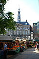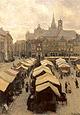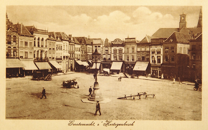 Op de Bossche Markt, daar is het allemaal begonnen toen ruim achthonderd jaar geleden er zich een nederzetting vormde. Binnen het territoir van het landgoed Orthen ontstond een handelsnederzetting die in het begin geen naam had. 'De nieuwe stad' of 'de nieuwe stad bij Orthen' was haar eerste benaming. Later kwam de naam 's-Hertogenbosch naar 'het bos van de hertog' pas naar voren. Maar of er echt een bos heeft gestaan? De Brabantse hertog was in ieder geval wel daadwerkelijk betrokken bij de eerste levensfase van de nieuwe stad. Gesticht als een combinatie van een handels- en vestingstad kwam Den Bosch als snel tot bloei. Nog geen halve eeuw na haar stichting, nog geen kwart eeuw na de realisering van de stadsmuren en poorten werd een kerkgebouw (de in romaanse stijl gebouwde Sint Jan) buiten de stadswallen gerealiseerd. Maar de Markt bleef het centrum van de handelsnederzetting. Hier werd de meeste handel gedreven. En natuurlijk werden de transacties beklonken met een glas. In het oudste Bossche stadsrecht was zelfs bepaald dat een Bosschenaar die de wijnman niet kon betalen, dit de volgende dag vóór twaalf uur ook mocht doen. Dat betekent dat de Markt al snel tal van herbergen, dranklokalen en hotels kende. In het verleden waren er zelfs méér dan nu. Want is de oude Gouden Leeuw niet driekwart eeuw geleden verdwenen? En sloot het befaamde hotel Noord-Brabant niet 25 jaar geleden haar deuren? De koffiehuizen zijn er niet meer en ook de sociëteiten Amicitia en De Arend verdwenen van het marktplein. Maar inderdaad: nieuwe cafés kwamen ervoor in de plaats. Andere zaken aan de Markt hadden eveneens een duidelijke relatie met wat zich op het plein afspeelde. De boeren en boerinnen konden nadat zij hun producten uit de Meierij verkocht hadden, zich ondermeer de petten van Boelens aanschaffen. Hun producten verkochten zij niet alleen in kraampjes op de Markt, maar ook in de kelders, waar op andere dagen de kramen opgeslagen lagen. En deze kelders waren groot, zo groot zelfs dat er in de achttiende eeuw volgens de overlevering paarden en karren in konden rondrijden. Maar in de 20e eeuw werden zij voor een deel dichtgegooid. Ondermeer omdat er eens een vrachtauto doorzakte. In vroeger eeuwen kende Den Bosch verschillende soorten markten. Deze vonden niet allemaal op de Markt zelf plaats. De bekendste is vanzelfsprekend de veemarkt, maar ook de vismarkt is lang elders gehouden. Thans is het vijf dagen in de week markt. Op dinsdag en donderdag een kleinere groenten- en fruitmarkt. Op de vrijdag aandacht voor vis en biologische producten. Op de woensdag en de zaterdag de grote markt, die vooral op de zaterdag tienduizenden naar het stadscentrum trekt. Er gebeurt méér op het plein. Eens per jaar is er kermis, en gedurende drie dagen wordt er carnaval gevierd. Regelmatig staat er een grote demonstratiewagen het een en ander aan de man te brengen en soms vinden er sportieve activiteiten plaats. Ook deze zijn aan veranderingen onderhevig: het spuitvoetbal maakte plaats voor beach-volleybal. En de horeca profiteert daar ook van. En maakt graag gebruik van de mogelijkheid om vóór de zaak een terras te realiseren. De Markt in Den Bosch leeft. Al achthonderd jaar en ze zal nog lang het kloppende stadshart blijven. |