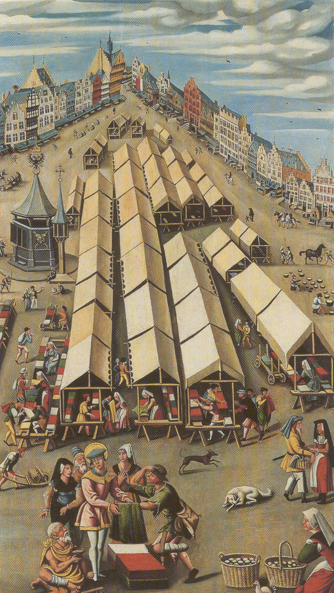 Ook op het marktplein zelf was het druk met kramen en handelaren. Blijkbaar stond er van alles door elkaar. Want in 1530 neemt het stadsbestuur ineens een rigoureuse maatregel. Alle kramen en 'banken' worden van de Markt gehaald en iedereen wordt verboden om er nieuwe kramen neer te zetten. Bovendien mochten er geen karren meer op de markt geparkeerd worden om van daaruit turf, hout, hooi en stro te verkopen. En die waren toch in grote hoeveelheden nodig: voor verwarming en de bereiding van het voedsel. Orde moest er op de Markt heersen!