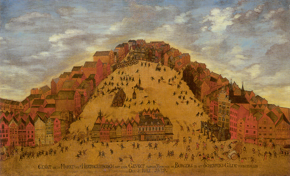 Het is altijd druk geweest op de Bossche markt. Al sedert de middeleeuwen werden hier tal van goederen verkocht. Voor een deel gebeurde dat door de boerenbevolking uit de Meierij zelf, maar ook stonden er handelaren op het plein. Vooral tijdens de grote jaarmarkten was het een drukte van jewelst. Omdat kranten ontbraken kon de bevolking tijdens het markten velerlei nieuwtjes horen. Zo brachten in 1525 Bossche kooplui, die met hun daar aangeschafte koopwaar terugkeerden van de Frankfurter markt de nieuwe leer van Luther naar hun geboortestad. Maar de Bosschenaren waren niet zo erg geïnteresseerd in deze nieuwe 'suijvere leer des evangeliums'.