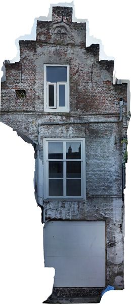 Opname van de achtergevel anno 2022 door middel van fotogrammetrie: daarmee worden ook alle maten vastgelegd. Het witte gedeelte links is de moderne aanbouw.