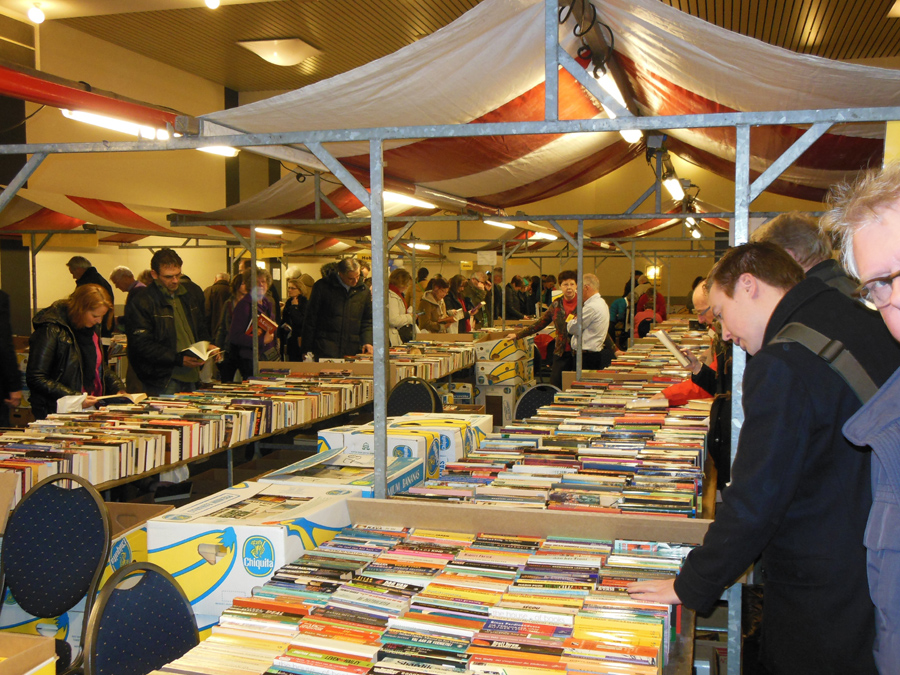 zijn dat dozen met cd's, lp's, en singletjes, die ook op de Boekenbeurs verkocht worden. Verder gaat het om praktische spullen, zoals elektriciteitskabels, lampen, een complete winkelinrichting (stellingkasten), kassa's, plastic tassen, boekenleggers et cetera”, verduidelijkt Frans van Mourik. Op de woensdag komt de firma Eekels professionele marktkramen plaatsen. Daags daarop (donderdag en vrijdag) komt een ploeg van ongeveer 50 vrijwilligers de bijna 2.300 dozen uitpakken, de boeken worden keurig per categorie verdeeld in de kramen gezet. De vrijdagavond, zaterdag en zondag zijn de dagen waarop de Boekenbeurs uiteindelijk haar deuren opent. Op vrijdag gaan de (gebonden) boeken voor 2,50 euro per stuk over de toonbank (niet-gebonden boeken zijn goedkoper). Op zaterdag kost een boek 1,50 euro, terwijl op zondag het restant voor de kiloprijs van 3 euro van de hand zal worden gedaan. Kinderboeken en strips hebben vrijdags en zaterdags een eigen prijs, strips ook op zondag. Vrijwilligers van de Speelgoedbeurs - een andere activiteit van de Vincentiusvereniging - zorgen alle beursdagen voor de inwendige mens van zo'n 150 vrijwilligers, die gedurende drie dagen acte de présence geven. Wat na de Boekenbeurs overblijft aan boeken, wordt geschonken aan zusterinstellingen in de regio met gelijke doelstellingen. Als op zondagavond rond 16.00 uur de laatste bezoeker is vertrokken, worden in razend tempo de niet verkochte restanten ingepakt in dozen en afgevoerd naar De Gruyterfabriek. Stellingkasten en dergelijke materialen worden afgebroken en opgeborgen. Een schoonmaakploeg is dan al bezig met het grondig 'kuisen' van de ruimtes. Meestal rond 21.00 uur worden de Brabanthallen weer opgeruimd en stofvrij opgeleverd. De vrijwilligers worden bedankt en gaan huiswaarts. Voor de leden van de werkgroep wordt de Boekenbeurs afgesloten met een maaltijd in het Vincentiushuis. Dit 'diner' bestond traditioneel uit erwtensoep en pannenkoeken. Maar in 2013 werd men verrast door een andere lekkere maaltijd, bereid door de voorzitter van de Vincentiusvereniging, Frans Koeman en zijn vrouw. DelicatessenhoekDe Boekenbeurs kent al jaren een 'Delicatessenhoek'. Daar worden bijzondere, soms antiquarische boekwerken tegen speciale prijzen verkocht. De werkgroepsleden Henk Brants en René Kok geven enkele voorbeelden. Twee schoolboekjes van de beroemde drukker Plantijn uit Antwerpen hebben enkele honderden guldens opgeleverd. Een uitzonderlijke vondst was een 16e-eeuws, theologisch werk, een Duitstalig missaal. Nogal wat boeken en theologische tijdschriften zijn afkomstig van kloosters en congregaties. Soms zitten daar bijzondere werken tussen, zeker als die in het Nederlands geschreven zijn, want meestal zijn die in het Latijn opgesteld. Een aparte vondst was een Arabisch handschrift, door een Utrechtse hoogleraar gedateerd als Laatmiddeleeuws. Een ander voorbeeld is het handgeschreven klantenregister van het voormalige hotel De Hut aan de Loonsebaan in Vught. Tijdens de Tweede Wereldoorlog werden er SS-officieren in ondergebracht. Het register is geschonken aan Nationaal Monument Kamp Vught. Een fotoboek ter gelegenheid van het afscheid van oud-burgemeester Van der Does de Willebois is aan het Stadsarchief geschonken. In het algemeen worden archiefwaardige stukken die over 's-Hertogenbosch gaan, aan het Stadsarchief overgedragen.Persoonlijke spullenVrij regelmatig komen met de boeken ook persoonlijke spullen mee. Meestal worden die bewust meegegeven, maar soms - blijkt achteraf - is dat niet de bedoeling. Het gaat hier om diploma's, (koninklijke) onderscheidingen met soms het lintje erbij, poëziealbums, fotoboeken. Daarnaast zijn munten, bankbiljetten (gebruikt als boekenlegger), postzegels, bidprentjes, geschenkbonnen en ansichtkaarten met boeken meegekomen. Als de Werkgroep vermoedt dat spullen van persoonlijke aard per vergissing zijn meegegeven, probeert zij de rechtmatige bezitters te achterhalen. Zo kon ooit een fotoboek met verstilde foto's uit het voormalige Nederlands-Indië aan de gelukkige eigenaar teruggegeven worden. Ook twee geborduurde schilderijen, in 1942 gemaakt door een 12-jarig meisje in een jappenkamp, konden worden teruggebracht naar de zielsgelukkige familie. De Boekenbeurs is van plan om deze persoonlijke zaken te fotograferen en die op de website van de Vincentiusvereniging te plaatsen, met de vraag aan het bezoekende publiek of deze wellicht per abuis zijn weggegeven. | 20 |