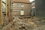 Het onderzoekEen klein terrein aan de Dode Nieuwstraat was één van de weinige stukken die nog voor onderzoek in aanmerking kwamen. Omdat de eigenaar van de winkel aan de Pensmarkt dit terrein wilde bebouwen was onderzoek noodzakelijk. Uitgangspunt daarbij was dat zoveel mogelijk resten moesten blijven zitten en alleen de bovenste meter mocht worden onderzocht. De rest zal dus voor toekomstige generaties onderzoekers bewaard blijven. Voor de uitvoering van het onderzoek is door de eigenaar een particulier opgravingsbureau, ADC-archeoprojecten, ingeschakeld.Het kleine onderzoeksterreintje aan de Dode Nieuwstraat ligt op een sleutelpositie voor onze kennis van de ontwikkeling van het klooster aangezien het op de grens ligt van de kloostergebouwen en een groot huis aan de Pensmarkt dat voorheen de Hertog van Brabant toebehoorde. Op het terrein stond tot voor kort een klein 19de-eeuws gebouwtje met een veel oudere zijmuur. Deze zijmuur vormde de buitenmuur van de reftervleugel en zal in de nieuwbouw behouden blijven.