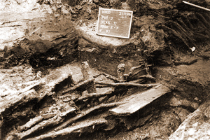 Afb. 3. Detail van de gevlochten beschoeiing, midden 13de eeuw.
