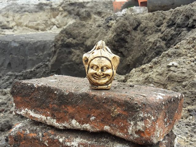 Archeologen hebben in de Bossche binnenstad voor het eerst een narrenfluitje gevonden. Het kleine fluitje met een zeer expressieve narrenkop lag tussen afval uit de 16e eeuw. Bijzonder is dat de vondst gedaan is op het bouwproject Amadeiro, dit kan vast geen toeval zijn.Archeologisch onderzoekDe archeologen van onderzoeksbureau BAAC voeren op dit moment onderzoek uit op het terrein aan de Oude Hulst-Weversplaats. Hier bevond zich oorspronkelijk een zandkop waarop al zeker vanaf de 14de eeuw bewoning was. De huizen lagen aan een route die gevormd werd door de Beurdsestraat, Weversplaats, Oude Hulst en de Jorisstraat die zo samen de verbinding vormde tussen de Vughterstraat en de Verwersstraat.NarrenfluitjeOp het achterterrein van de huizen hebben de archeologen een afvalpakket gevonden daterend uit de eerste helft van de 16de eeuw. De meest bijzondere vondst hieruit is een klein fluitje gemaakt van steengoed. Bijzonder is dat het fluitje geboetseerd is in de vorm van een zeer expressieve narrenkop.De nar is goed herkenbaar aan zijn narrenkap en de grimas op zijn gezicht. Aan de achterkant bevindt zich een klein steelvormig mondstuk waarop geblazen kon worden. Het mondstuk is voor een deel afgebroken. Het fluitje is een product dat gemaakt werd in Raeren. Dit ligt nu in België, vlakbij de stad Aken. Raeren was vanaf de late 15de eeuw een productiecentrum van vooral steengoed kannen die over een groot gebied verkocht werden. De fluitjes waren een ondergeschikt bijproduct. Nar op de Sint-JanDe voorstellingen van narren waren in de 16de eeuw heel populair en zijn veelvuldig te vinden in grafische afbeeldingen uit die periode. Met name deze afbeeldingen hebben ervoor gezorgd dat de narren ook voor allerlei andere kunstuitingen gebruikt werden. Zo kennen we uit dezelfde periode ook een luchtboogbeeld van de Sint-Jan dat ons een op een doedelzak spelende nar toont.Narren waren vooral populair, omdat zij hooggeplaatste personen als vorsten maar ook de geestelijkheid met hun grappen voor gek konden zetten. Aan het hof werden ze zelfs door de vorst zelf aangesteld. Naast hun grappen en grollen werden ze ook als raadgevers gezien. |
