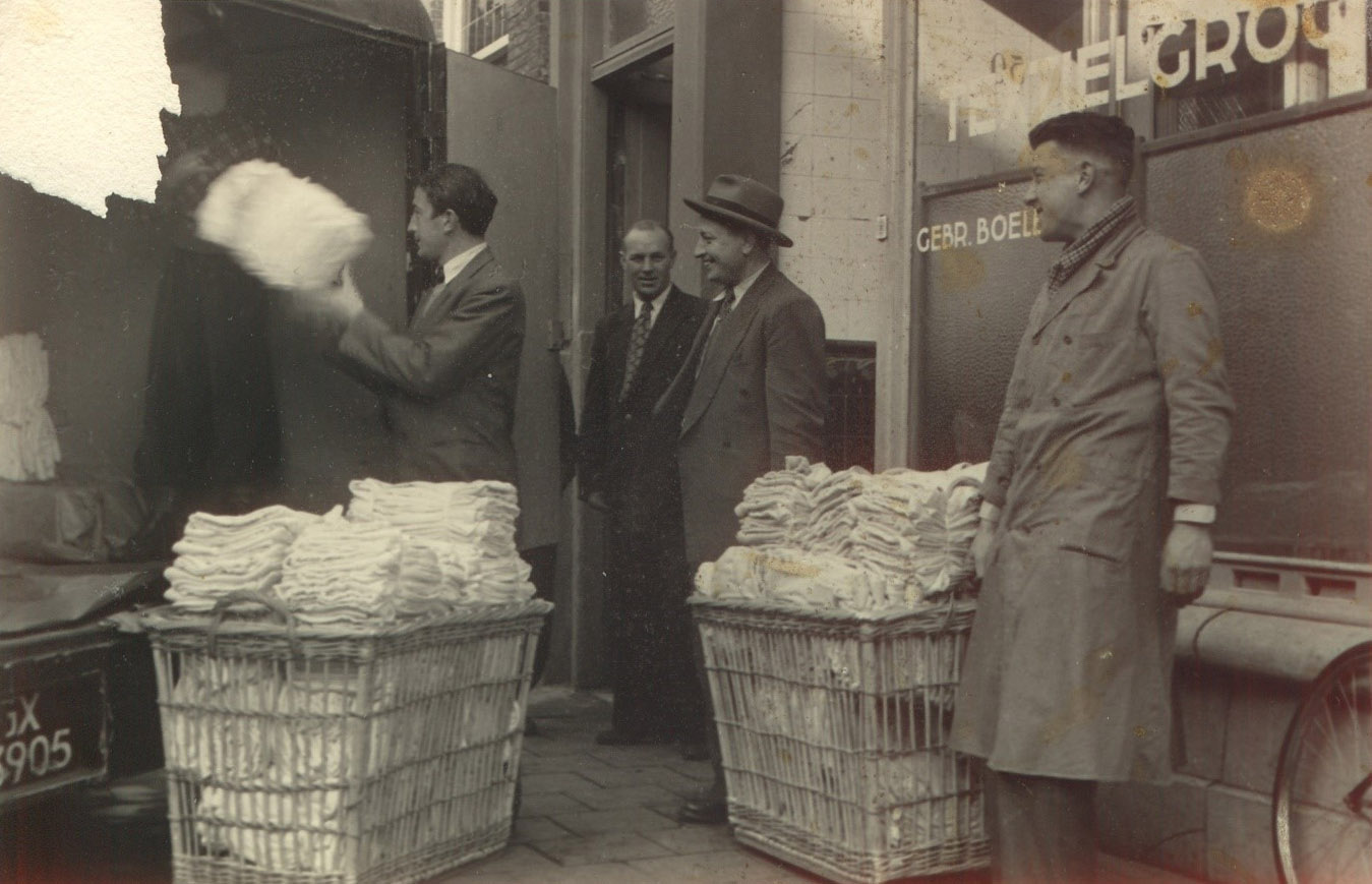 Johannes Wilhelmus Antonius (Jo) Boelens (1891-1973) (zie rubriek ‘Personen’) bouwt aan een herstart van zijn grossierderij na de oorlog. Oudste zoon Ben komt terug uit Indië en stort zich enthousiast in de handel van zijn vader. De zonen Piet en Jan zitten in de verkoop. Vanaf 1947 doet dochter Toos de administratie. De taken waren nog niet zo verdeeld, iedereen was met hart en ziel aktief. Textiel was nog steeds ‘op de bon’ en er moest wel veel geritseld worden om een beetje de hand te lichten met dit beperkende systeem. Er waren ook veel nep-bonkaarten in omloop.