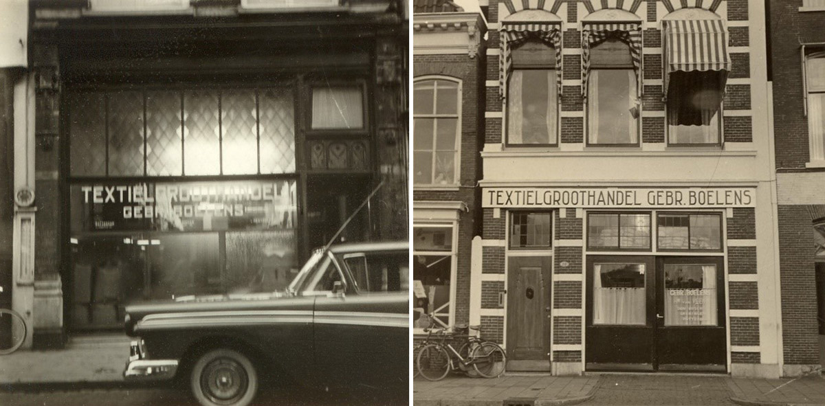 ![body=[]](documenten/textielgroothandel firma gebr. boelens/03-04.jpg) Links: 's-Hertogenbosch, Kerkstraat 32. Rechts: Groningen, filiaal Schuitendiep 78.