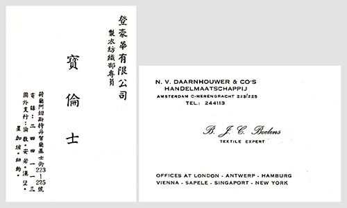![body=[]](documenten/textielgroothandel firma gebr. boelens/13-14.jpg) Zijn visitekaartje was aan één zijde in het Japans opgesteld.
